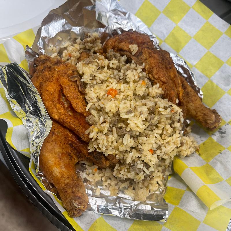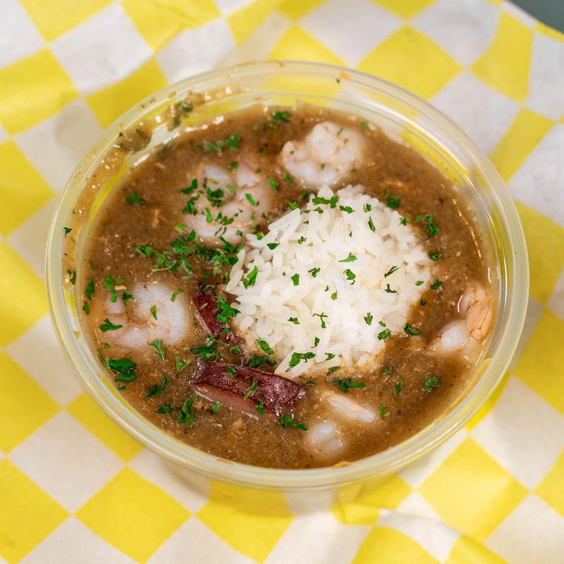 Deep fried hen, stuffed with dirty rice, served with 4oz cup of Gumbo