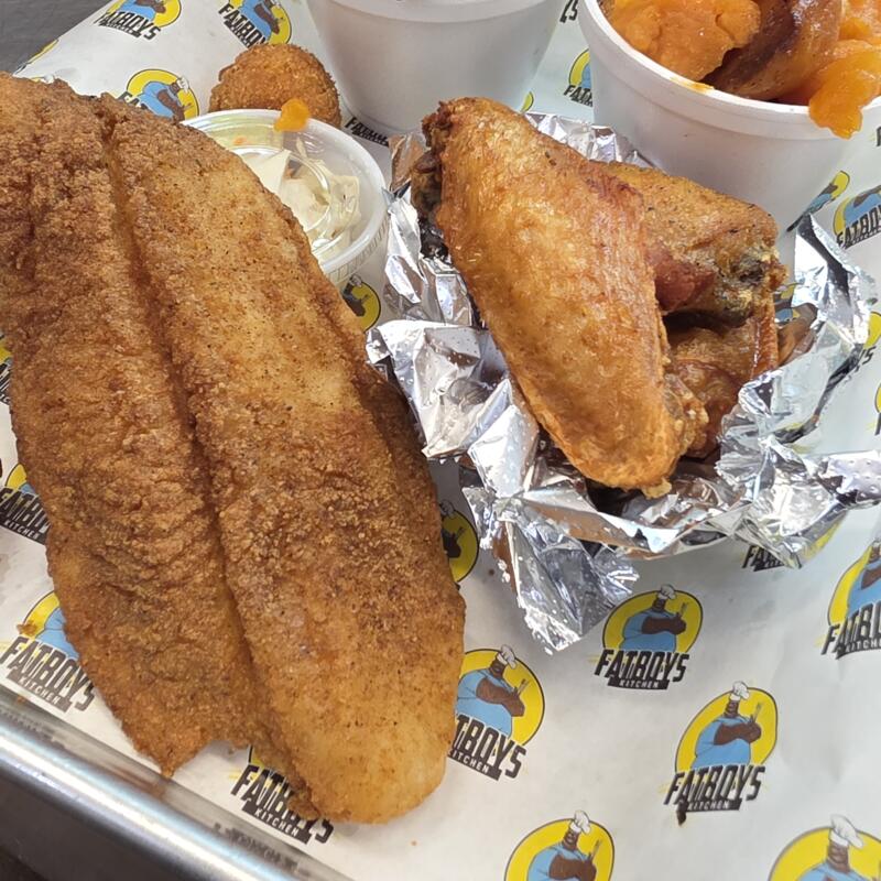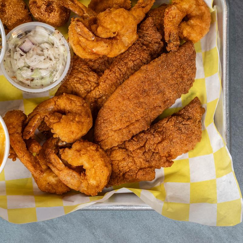 Fish & Shrimp Platter with 2 Sides $17.99 | 1 Fish & Popcorn Shrimp with Fries $14.99