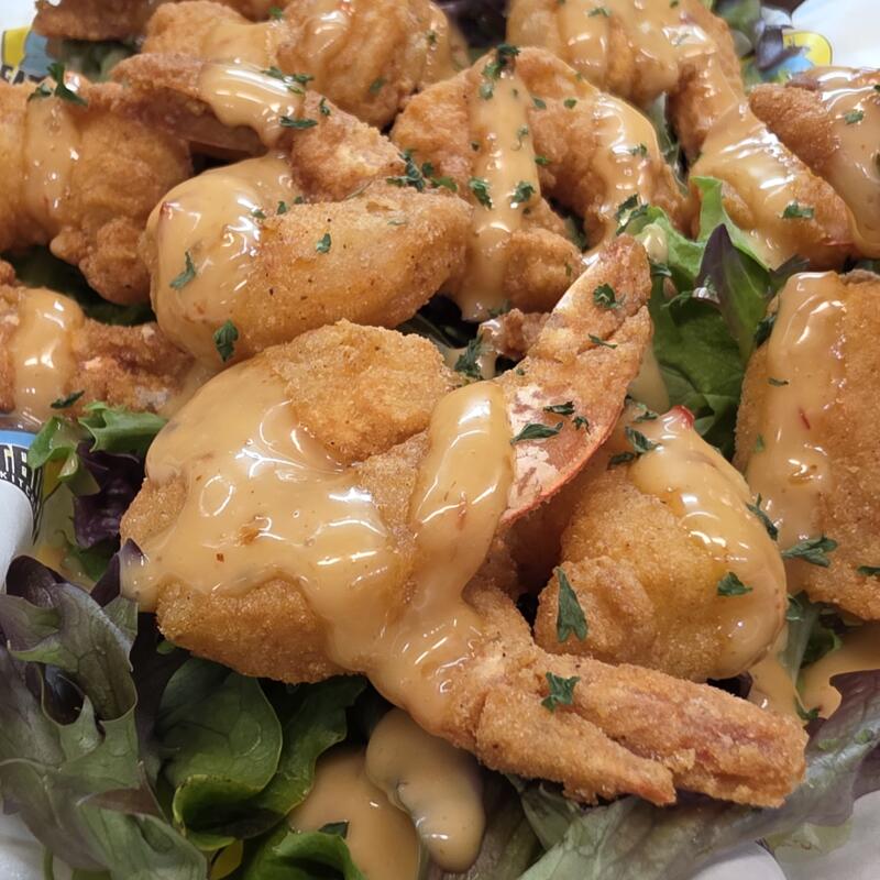 Hand-breaded Shrimp, Lettuce, Tomato, Fatty Sauce on Hoagie Roll